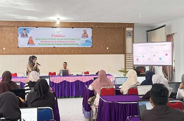 Padangsidimpuan, 6 Juni 2025 – Program Pascasarjana Universitas Islam Negeri (UIN) Syekh Ali Hasan Ahmad Addary (Syahada) Padangsidimpuan mengadakan Pelatihan Manajemen Referensi untuk Penyusunan Tesis bagi mahasiswa Program Studi Pendidikan Dasar.